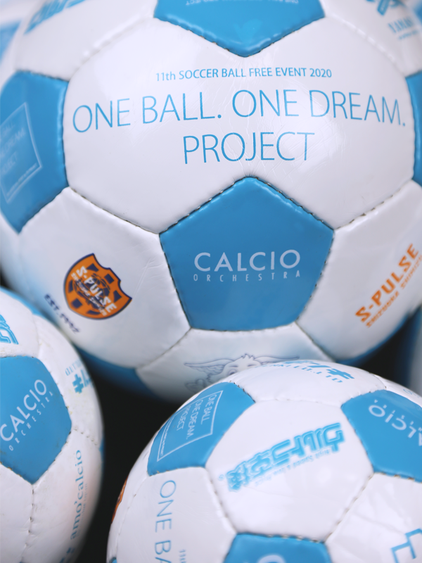 カルチョオーケストラの売上の一部は未来の日本サッカー界のために使われています。子供たちにサッカーボールを無料配布する活動に力を入れています。
