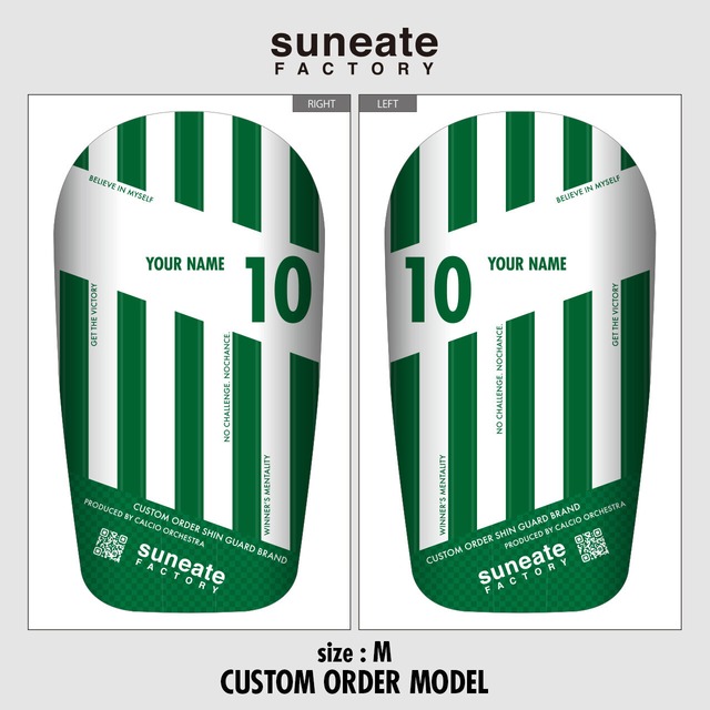 suneate FACTORY CUSTOM ORDER COLLECTION STANDARD DESIGN SERIES [STRIPE GREEN] スネアテファクトリー カスタムオーダーコレクション スタンダードデザインシリーズ [ストライプブグリーン] ※本商品は「Name」と「Number」のカスタムオーダー商品です。 「Name」には半角大文字のアルファベットを12文字以内で入力してください。 「Number」はご希望の数字を選択して頂き、ご希望以外の欄には「この中にはない」を選択してください。お間違いになりますとご希望の仕上がりにならず返品も出来ません。 □サイズ: ・M(70〜90×174mm)34g ・S(60〜80×145mm)20g □シェル:軽量PS樹脂(ポリスチレン) □クッション:ウレタンフォーム ☆☆☆☆☆☆☆☆☆☆☆☆☆☆☆☆☆☆☆☆☆☆☆☆☆☆☆☆☆☆☆☆☆☆☆☆☆☆☆☆☆☆ 本商品はご注文後約3〜4週間でお届けとなります。 オーダー品のため注文後にキャンセル返品等はお受けできませんのでご了承ください。 ※オプションの「Number」はお間違いの無いようご選択ください。 ※「Number」はオプションにございますプルダウンメニューの「1〜49」「50〜98」「99〜0」より1つだけお選びください。選択いただいた番号以外は「この中にはない」をお選びください。 ※「Number」の誤入力による再制作は料金別途になりますのでご了承ください。 ※商品の色味は写真と実物では若干異なる場合がございますので予めご了承ください。 ※サイズは製品によって若干の誤差が出る場合がありますのでご了承ください。 ※デザインは実際の商品と若干誤差が生じる場合がございますのでご了承ください。 ※強い擦れや硬い物による擦れでプリントの剥がれが生じる場合があります。 ※十分な強度を確保しましたが過度な衝撃を加えた際には割れる場合があります。 ☆☆☆☆☆☆☆☆☆☆☆☆☆☆☆☆☆☆☆☆☆☆☆☆☆☆☆☆☆☆☆☆☆☆☆☆☆☆☆☆☆☆ ONLY ONE. ONLY YOU. 世界でたった一つ、あなただけの「スネアテ」を。 耐衝撃性に優れた軽量PS樹脂(ポリスチレン)のシェルに超高精細な3Dプリントを施し、世界にたった一つ、あなただけのカスタムオーダーを実現。世界一デザインバリエーションの豊富な「スネアテ・ファクトリー」の商品群の中からお気に入りのデザインをチョイスしてあなたの「Number」と「Name」を刻むことが可能。人目に触れることのなかったシンガードを、人に見せたい、自慢したいアイテムへと変えた。「見えなかったスネアテを、見せたいスネアテに。」そんな想いから生まれたこだわりのスネアテブランド。